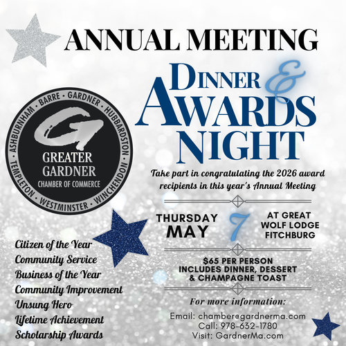 If you would like a printable nomination form, please email chamber@gardnerma.com and allow 24 business hours for a response. Nominations are reviewed by the Chamber's Nominating Committee and past Citizens of the Year. Nominations are due by March 20, 2026.